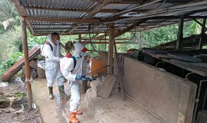 ” Pemprov juga menyiapkan desinfektan secara gratis, siapa saja boleh ambil, yang urgen memberikan himbauan kepada masyarakat & peternak lokal supaya menjaga bersama melaksanakan biosekuriti di kandang dan peralatan, desinfektan, orang kerja dan juga orang lain yang lalu lalang masuk keluar kandang”.