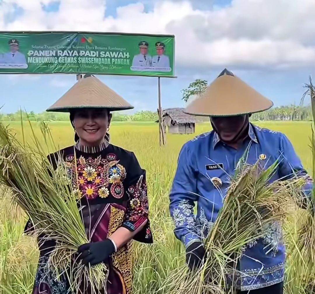 Gubernur YSK dan Ibu Panen Padi di Kabupaten Bolsel, “Irigasi dan Alat Menjadi Tantangan Swasembada Pangan”